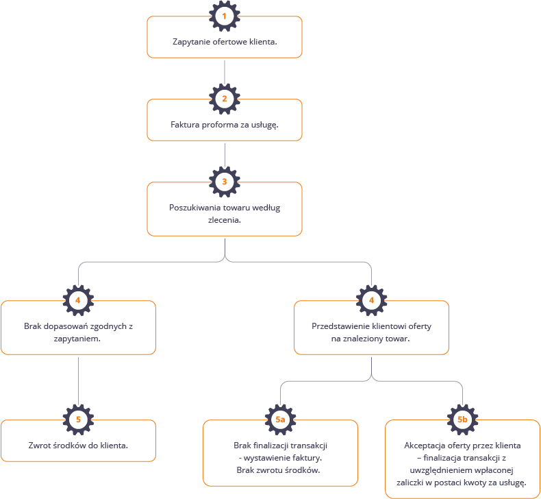Opłata za usługę to 350 PLN netto za jedno zapytanie w przypadku, kiedy towar zostanie znaleziony, przedstawimy na niego ofertę handlową lecz transakcja nie zostanie sfinalizowana.
